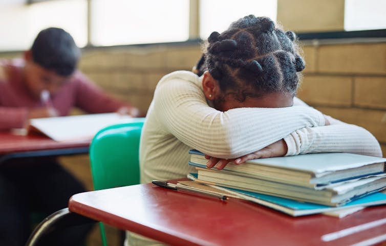 Therefore, if schools want to help students do better, my research suggests they should focus on helping kids learn to regulate their anxiety. One way to do this is to use cognitive behavioral therapy, which is a treatment that helps people identify and change negative thought patterns that affect their behavior and emotions. This involves a number of techniques, such as helping kids directly face their fears and difficulties – in this case, tests – instead of avoiding problems. Prior research has found a link between students with PTSD and “school refusal” behavior – that is, refusing to go to school.