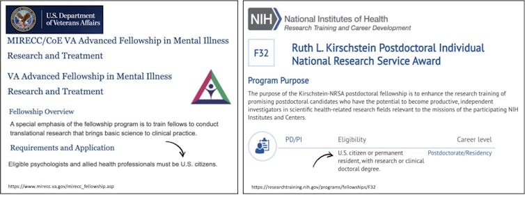 I am getting ready to begin a new chapter as a postdoctoral scholar. As a postdoc, funding becomes essential for continued academic development. One might think that citizenship status should no longer be a limiting factor for qualifying for a postdoctoral fellowship. Yet, a quick search of the U.S. Department of Veterans Affairs website for advanced fellowships or visiting the National Institutes of Health website on the F32 fellowship – a highly prestigious NIH-funded fellowship that provides up to three years of support to enhance the research training of promising postdoctoral researchers – shows this is not the case. In my view, it is time for the nation to move away from worrying about which country a person is from and realize that scientific progress requires drawing on talent from around the world.